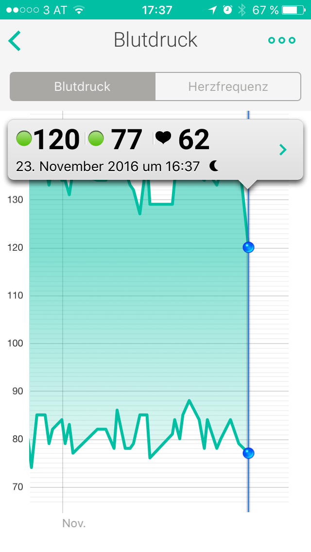Sollte das zu denken geben, wenn der Blutdruck nach so einem kleinen Workout (<30 Minuten) und kurzer Ruhepause (<60 Minuten) sowas von im 'grünen' Bereich ist ->